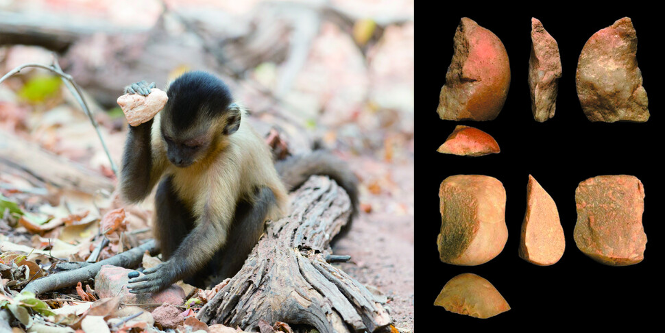 《단단한 고고학》(김상태)이라는 신간의 신문 서평에 실린 사진이다. 기자는 이렇게 서평을 시작했다. “도구를 사용하는 유일한 동물이 인간이라는 학설은 물론 오래전에 파기되었다. 그러나 도구를 사용하게 되면서 인간의 진화와 문명 발달에 가속도가 붙었다는 사실은 분명하다.”(한겨레신문, 2023.05.13. 최재봉 선임기자)