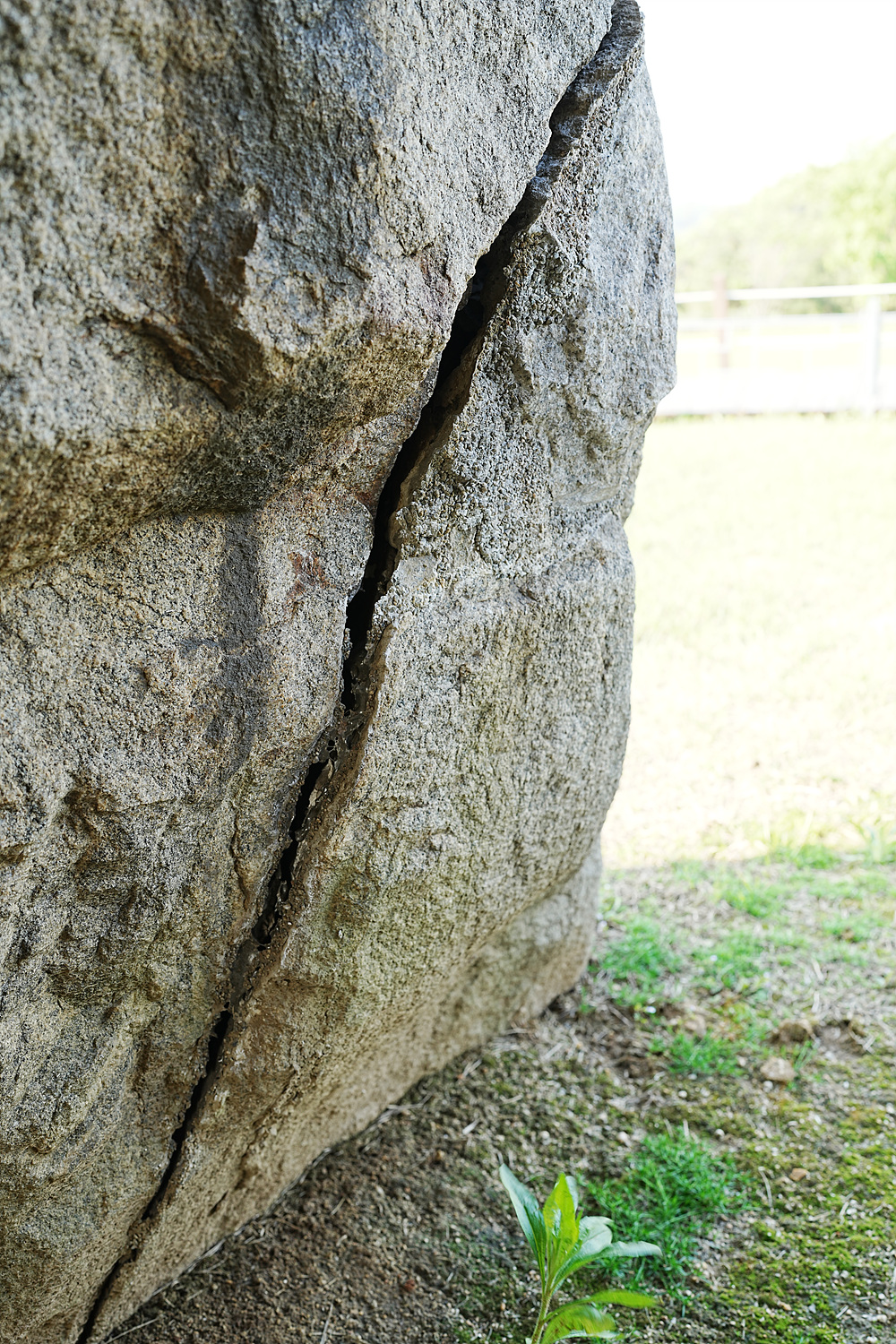 수천 년 세월을 품은 이 고인돌이 위태로워 보인다. 뒤쪽에서 보아 오른쪽 받침돌에 생긴 균열이 심각하다. 균열이 생긴 것은 오래전인데 점점 심해지고 있다. 강화군에서 대책을 마련 중이라고 한다. 정부 차원의 관심과 지원도 필요하다. 세계문화유산, 그중에서도 으뜸인 고인돌이 ‘강화 부근리 지석묘’이다.