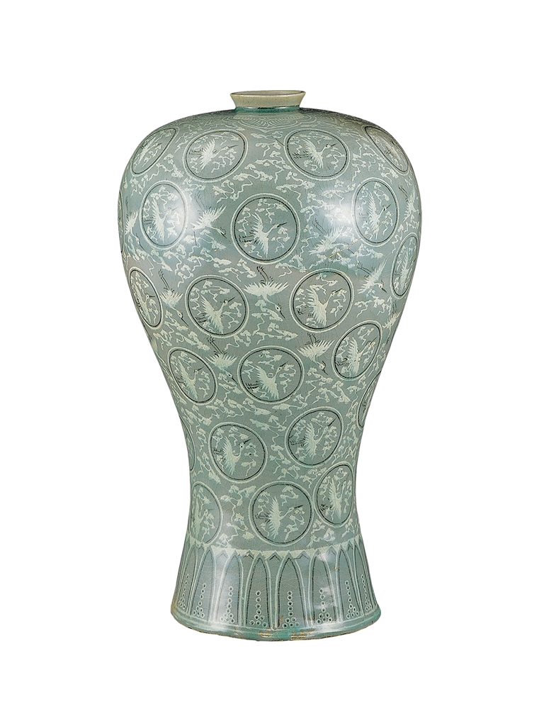 간송은 전형필(1906~1962)의 호입니다. 일제강점기에 야마모토라는 사람이 강화에서 이 청자를 도굴해서 스즈키에게 천 원에 넘겼다고 합니다. 천 원이면 당시 서울에 번듯한 기와집 한 채를 살 수 있는 돈이었대요. 마에다라는 이가 6천 원에 사들여서 무려 2만 원을 부릅니다. 전형필이 이 매병을 2만 원에 삽니다. 기와집 스무 채 값을 선뜻 지불한 겁니다.