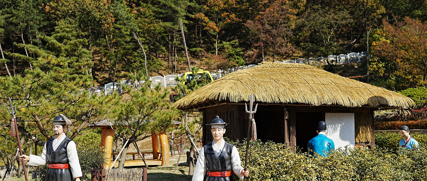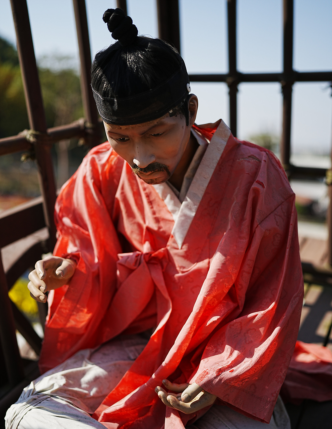 포졸이 지키는 울타리 안을 보니 내시 같은 인물 모형도 있고 여인들도 있네요. 궁녀들입니다. 정말 연산군 모시라고 딸려 보낸 사람들일까요? 예, 그렇습니다. 궁녀 4명과 내시 2명이 교동까지 따라와 연산군을 시중들었습니다.
