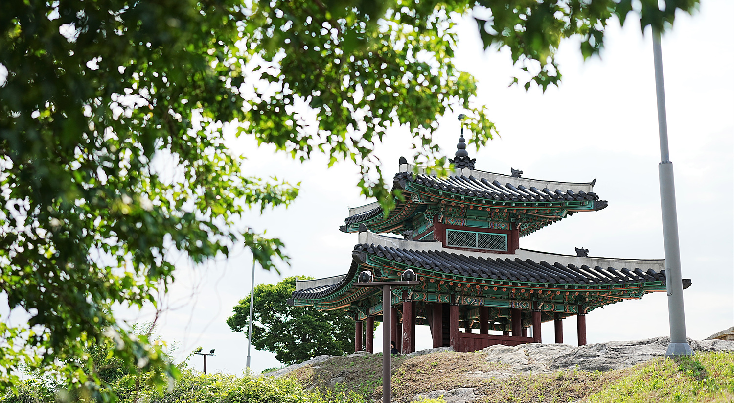 정상, 날렵한 건물이 우뚝하다. 남장대이다. 강화산성 완공하고 50여 년 뒤인 1769년(영조 45)에 지었다. 지금 건물은 2010년에 복원한 것이다. 장수가 여기 남장대에서 군사 훈련을 지휘했다고 한다. 북산에는 북장대가 있었는데 지금 터만 다져 놓았다.