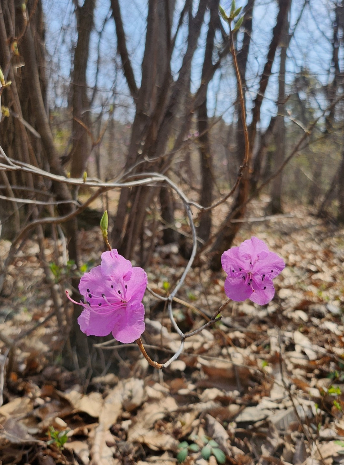 드문드문 진달래 하늘거리고