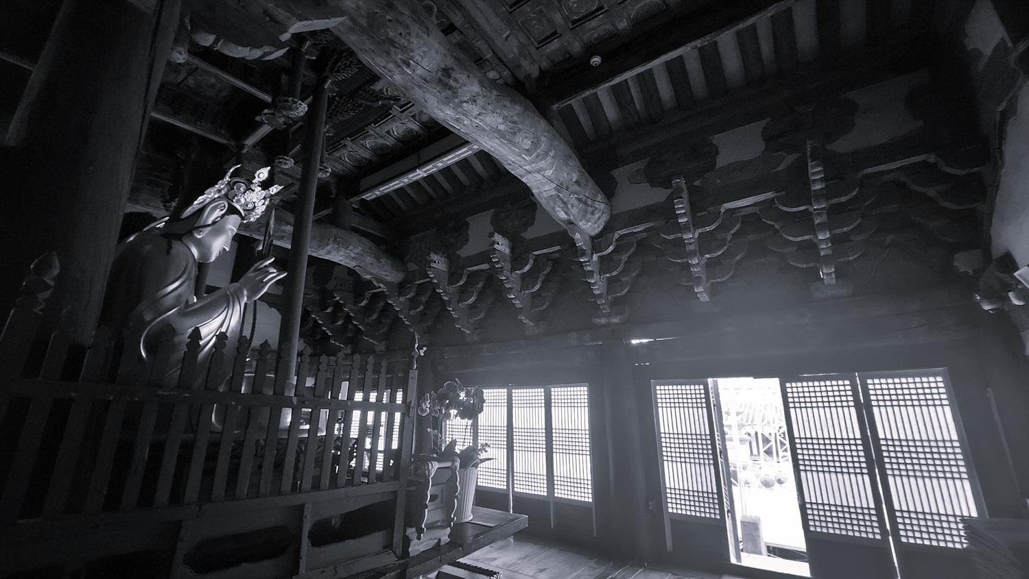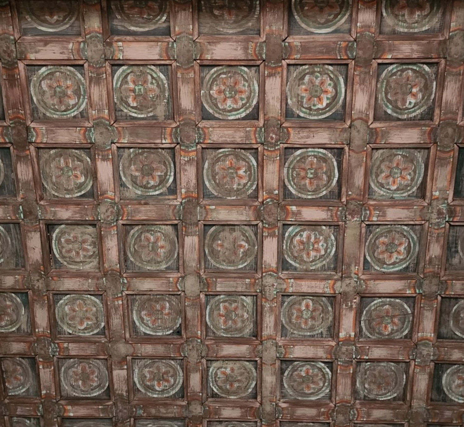 대웅전 천장 장식문양이 강화 전등사 대웅전과 유사하다.