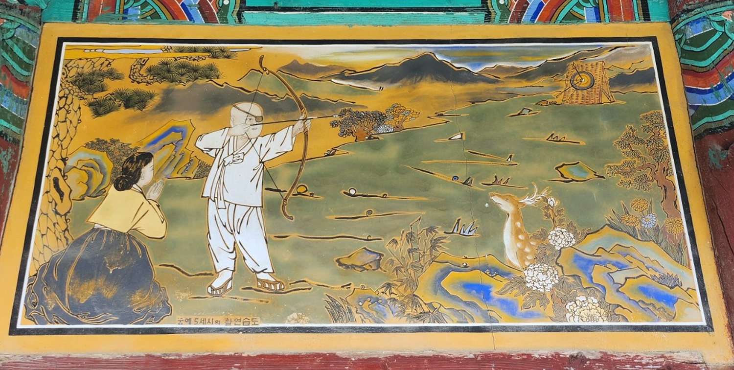 궁예가 어릴 때 이곳에서 활쏘기 수련을 했다고 하는데 이 이야기도 살려서 벽화로 표현했다.