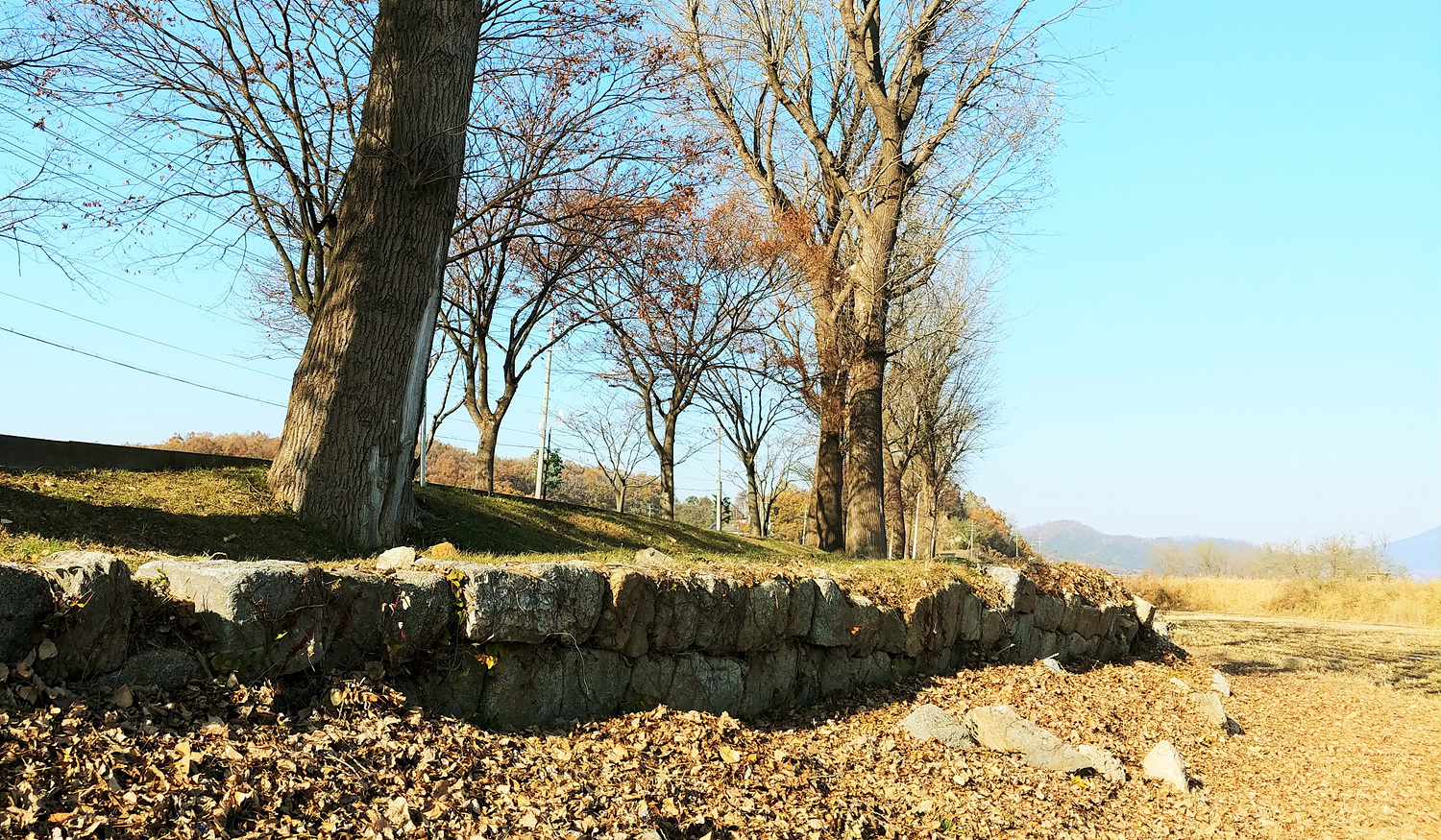 밑바닥엔 큼지막한 돌은 앉히고 그 위에 겹겹이 벽돌을 쌓았는데요, 남은 곳도 온전하지 못합니다. 속살을 그대로 드러내고 있습니다. 세월이, 물결이, 그리고 거대한 나무뿌리가, 벽돌성을 부수고 뒤틀어놓았습니다. 그래도 이렇게 일부나마 남아있음에 감사합니다.
