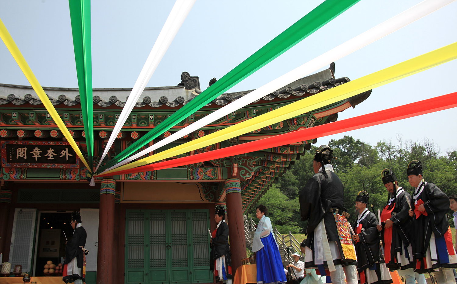의궤가 돌아온 2011년 그해, 6월 11일, 강화에서 성대한 행사가 열렸습니다. 강화산성 남문에서 외규장각까지 의궤를 옮기는 가장행렬이 있었습니다. 이어서 외규장각에서 고유제를 올렸습니다.