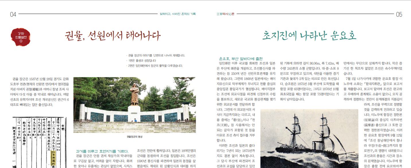 이번 창간호에서는 참성단, 《심도기행》, 권율, 운요호, 향교교육, 강화초등학교 등을 다뤘다.