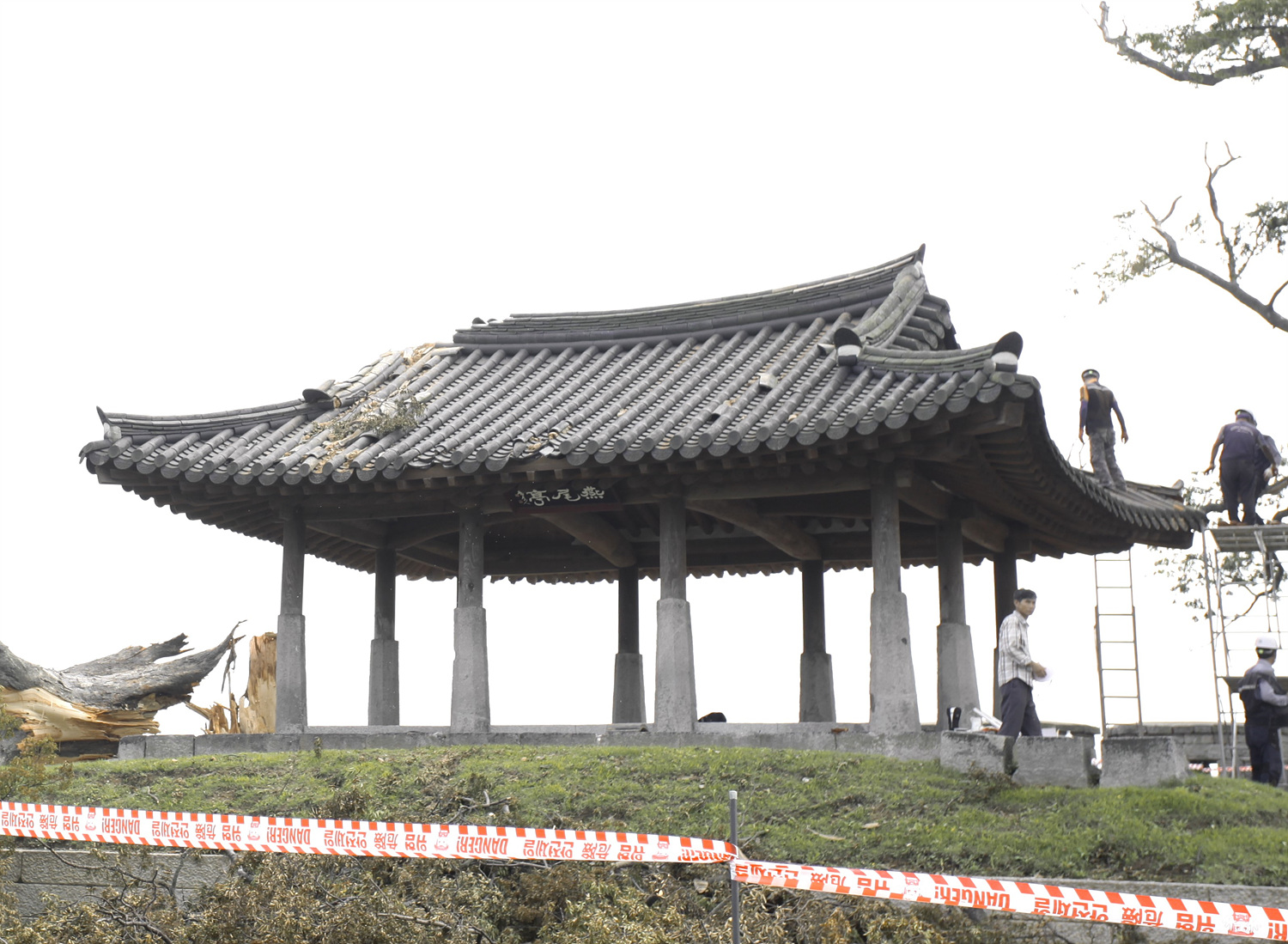 몇해 전, 태풍 링링으로 파손된 연미정 지붕을 바로 정비한 것도 이분들이다.