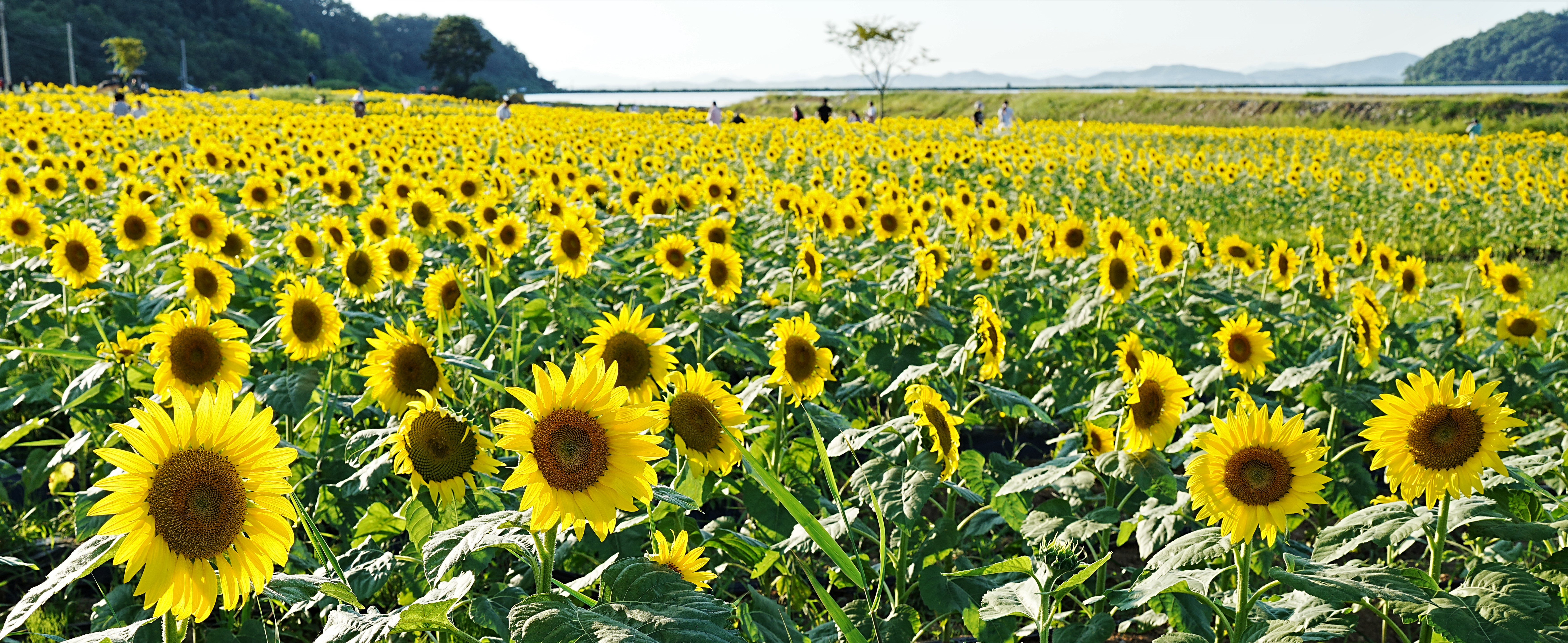 저수지 주변에 펼쳐진 어마어마한 해바라기 물결. 말 그대로 장관이었다. 고려산 진달래 군락을 처음 봤을 때와 흡사한 놀람을 경험했다.