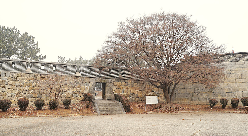 광성돈대 앞 하얀 안내판 참 오래됐다.