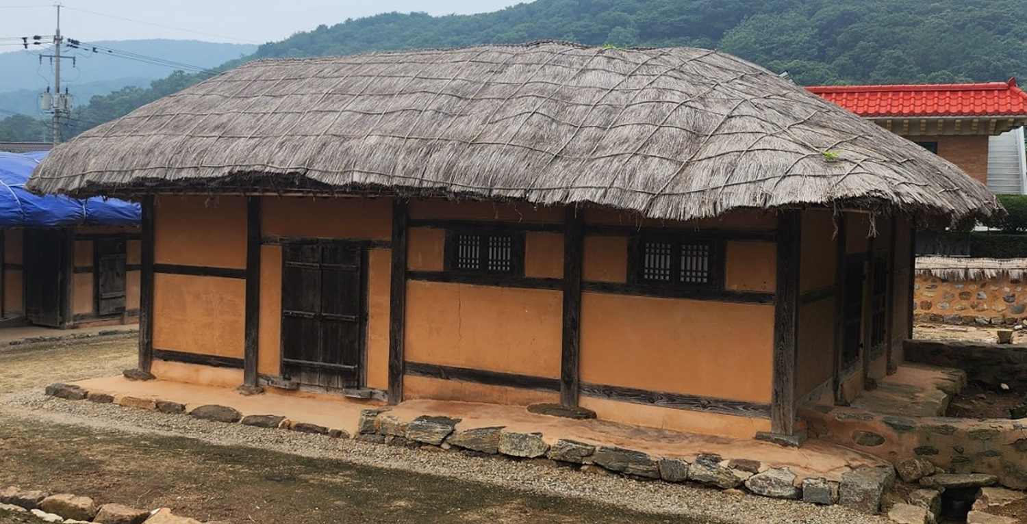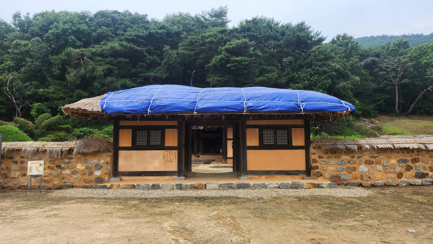 출입문 초가지붕을 저렇게 덮어 놓았다.