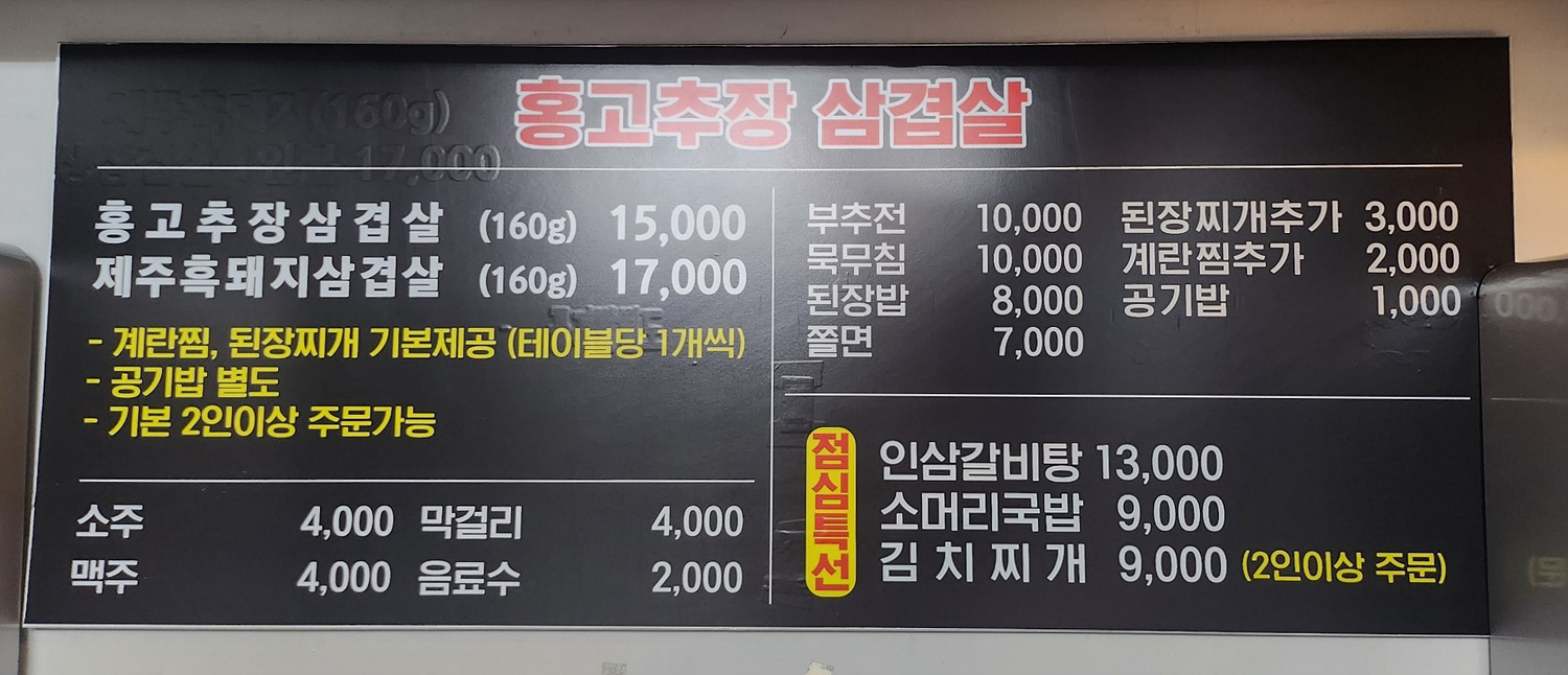 그래도 먹던 대로 고추장 삼겹살을 시켰다.