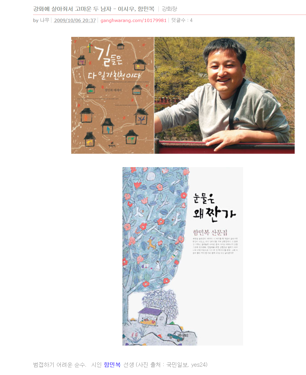 아, 2009년에 함민복, 이시우 선생을 간략하게 소개했었구나.