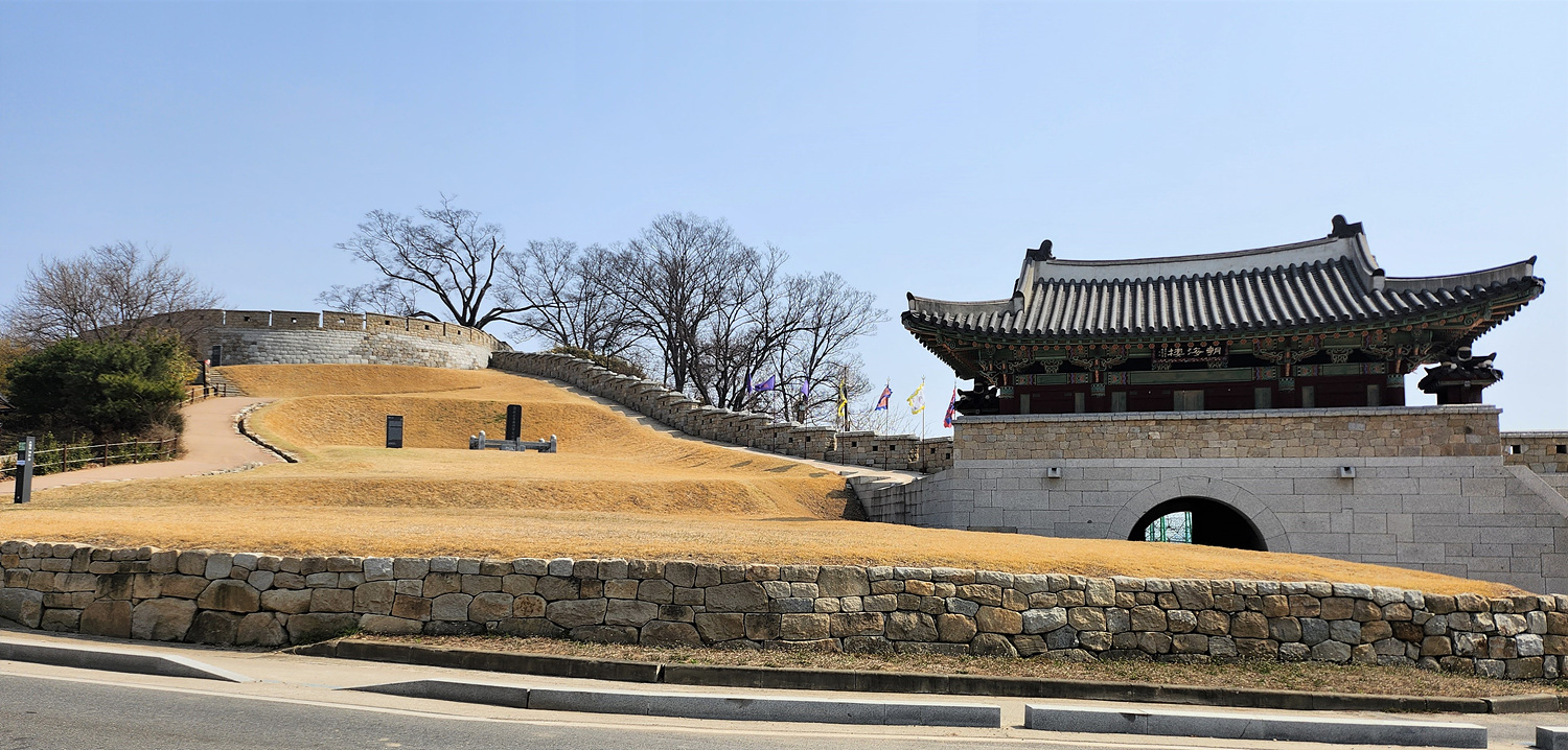 주차장에 차를 대고 내렸습니다. 아래서부터 찬찬히 살펴보도록 하지요. 강화산성 남문 닮은 조해루(朝海樓)를 먼저 만납니다. 조해루는 강화외성의 성문입니다. 조선 후기, 강화 동쪽 해안에 외성을 쌓았습니다. 성을 쌓으면 드나드는 성문이 필요하죠. 조해루가 바로 외성 성문 가운데 하나입니다. 덕진진 공조루, 광성보 안해루 역시 강화외성 출입문입니다. 조해루에서 저 위 월곶돈대까지 성벽이 이어져 있지요? 그 성벽이 바로 강화외성의 일부입니다.